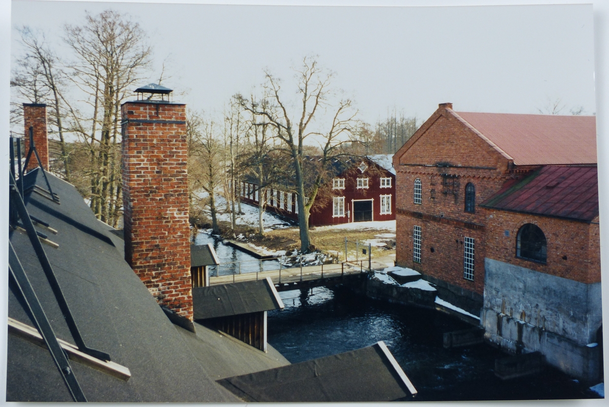 Utsikt från byggställningar mot söder vid Mekaniska verkstan. Gavel mot söder.