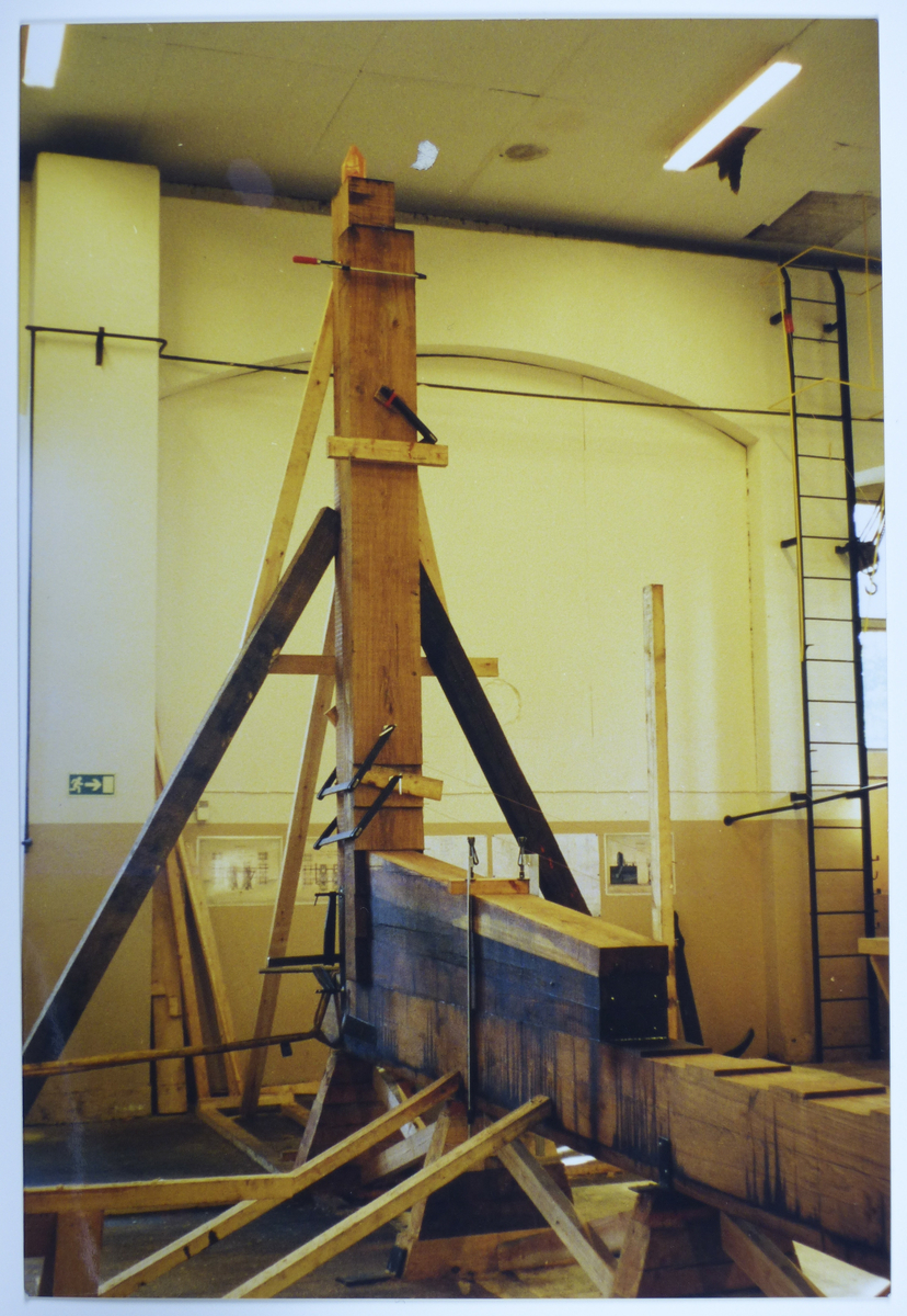 Fotografiet visar en trä-konstruktion under arbete i den mekaniska verkstaden.
