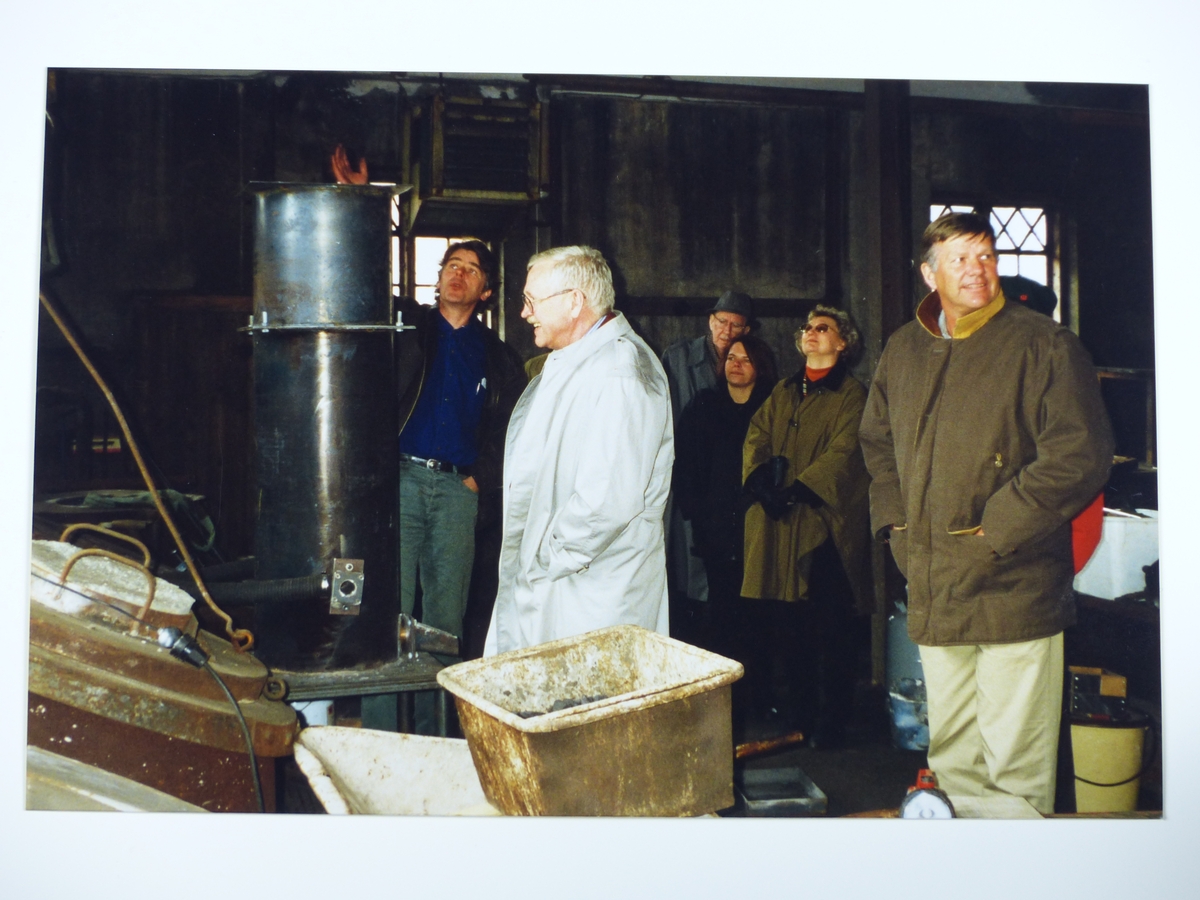 Titel: Metallgjuteriet. Ragnar Löchen demonstrerar sin nya kupolugn för Rolf Sahlberg, Göte Fernheden, Helen Westin, Eva Björkman, Jörgen Friberg, Folke Larsson och Mikael Hedin.