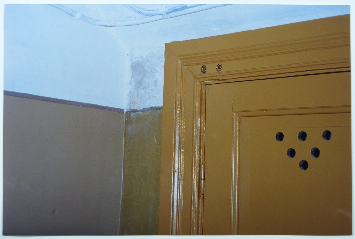 Korridor 007, väggen till vänster om foderlisten, ursprunglig färgskikt kvar