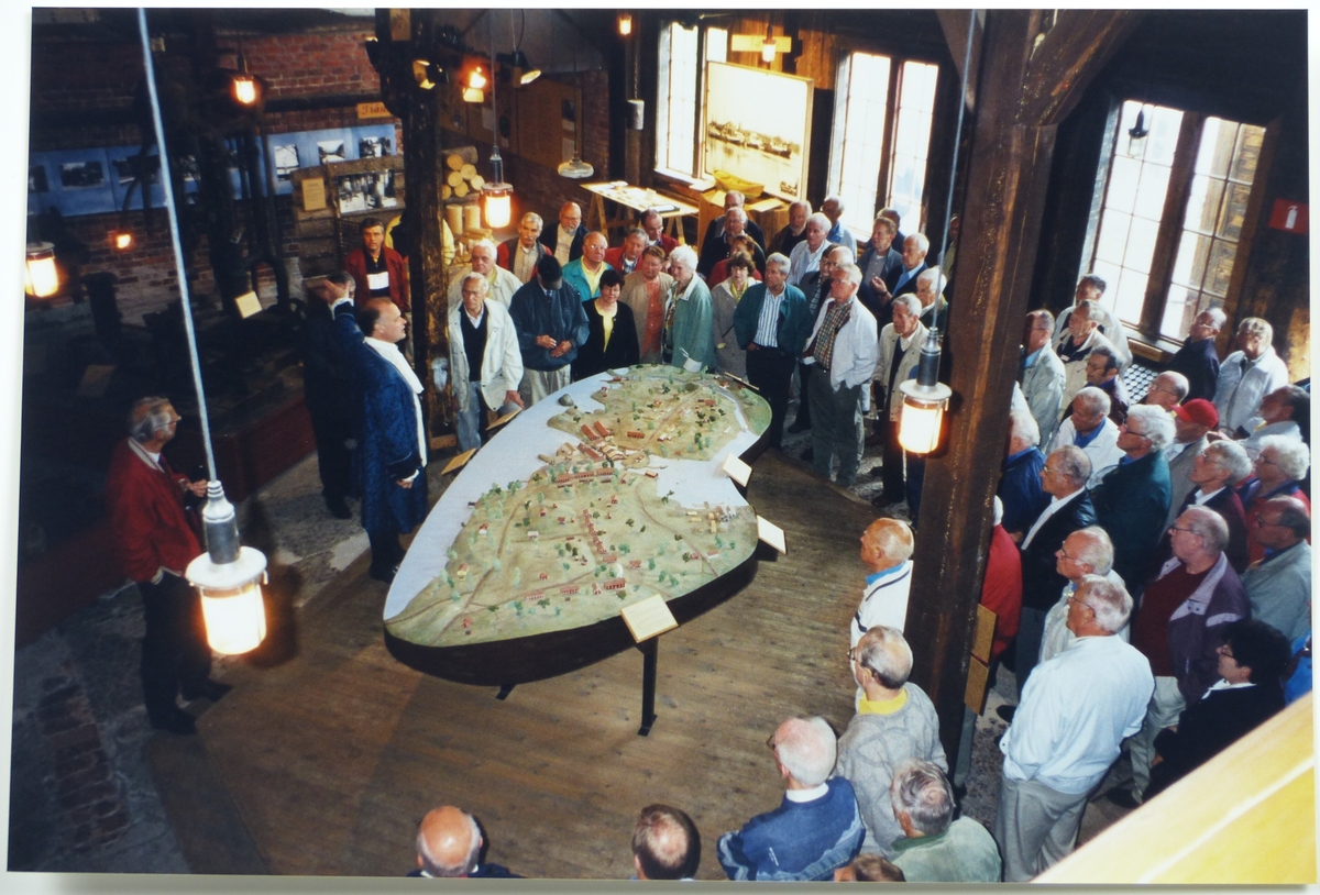 Pensionärer från Volvo på besök i Forsvik i juni 2002. I Träsliperiet.