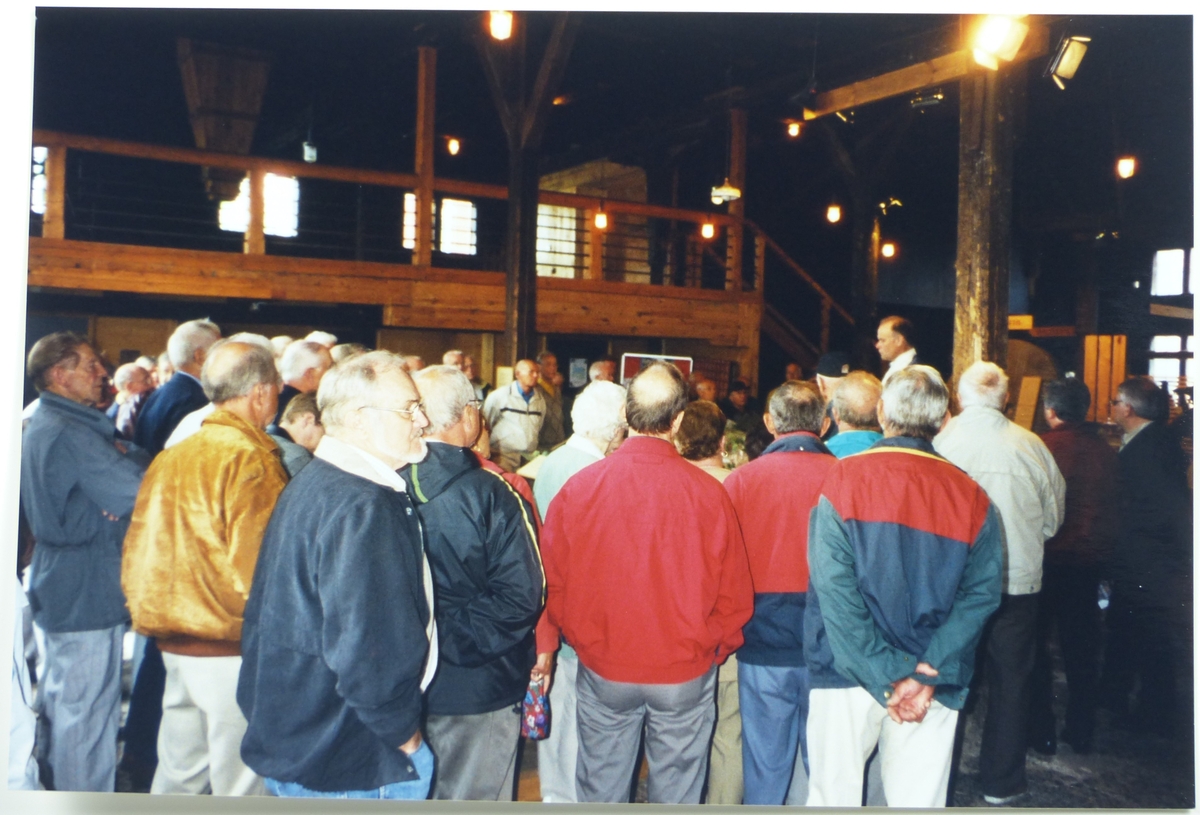 Pensionärer från Volvo på besök i Forsvik i juni 2002. I Träsliperiet.