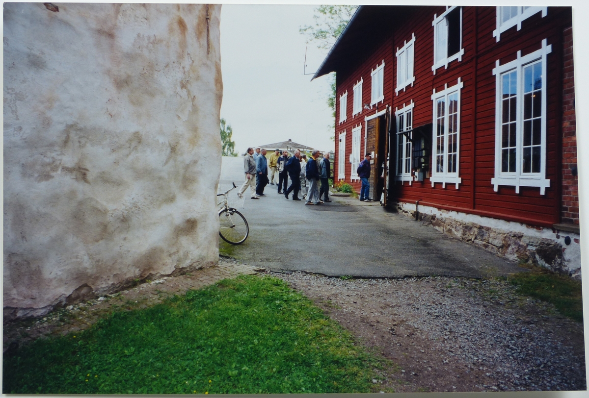 Pensionärer från Volvo på besök i Forsvik i juni 2002. På väg in i Träsliperiet.