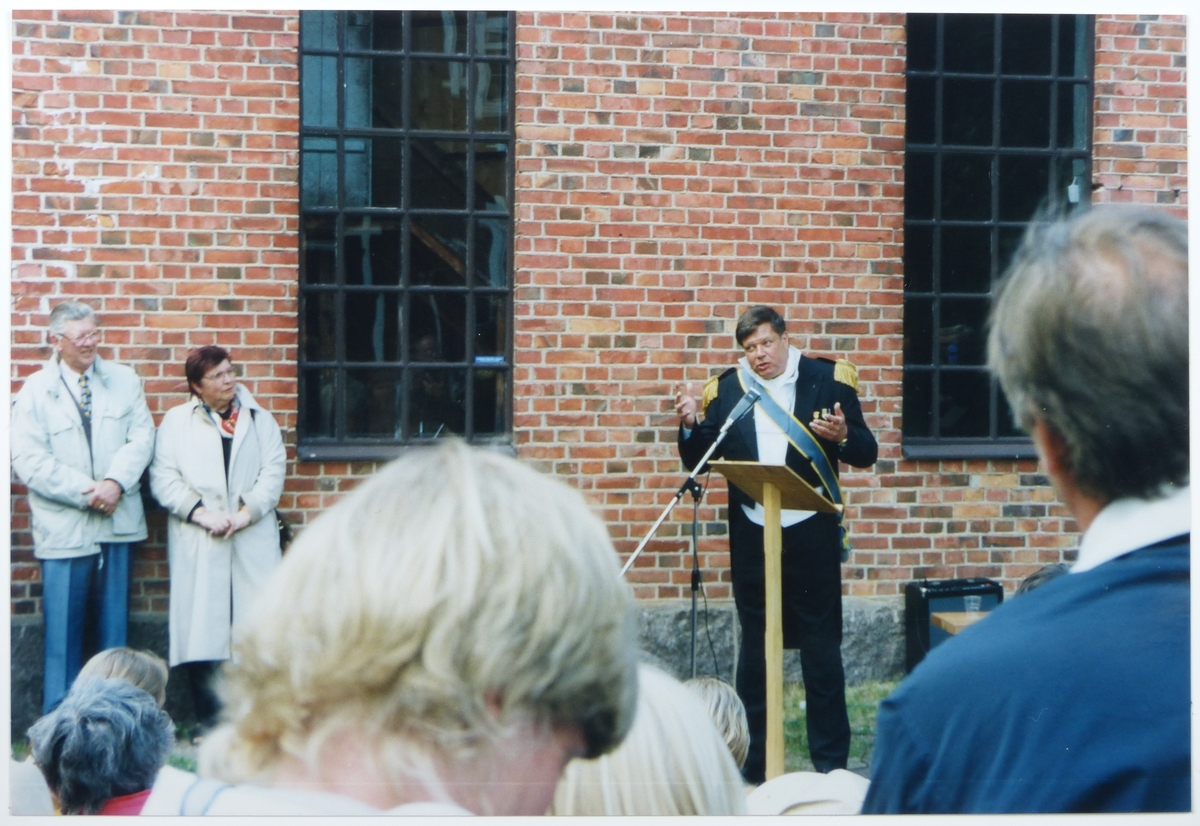 Invigning av Forsviks Industriminnen 1 juni 2000: Claes-Göran Österlund, VD Göta Kanalbolaget invigningstalar med yviga gester