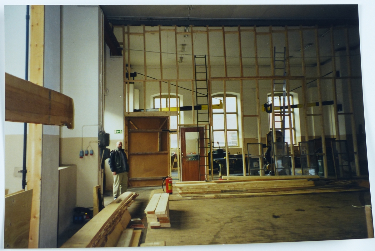 Plåtverkstan, uppförande av vägg för modellsnickeri