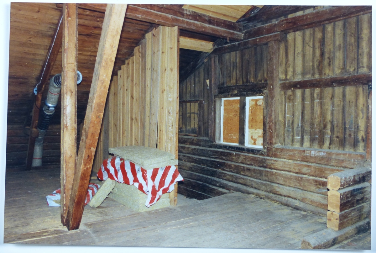 Vinden, uppgång, trappa från receptionstak. Västra hörnet.