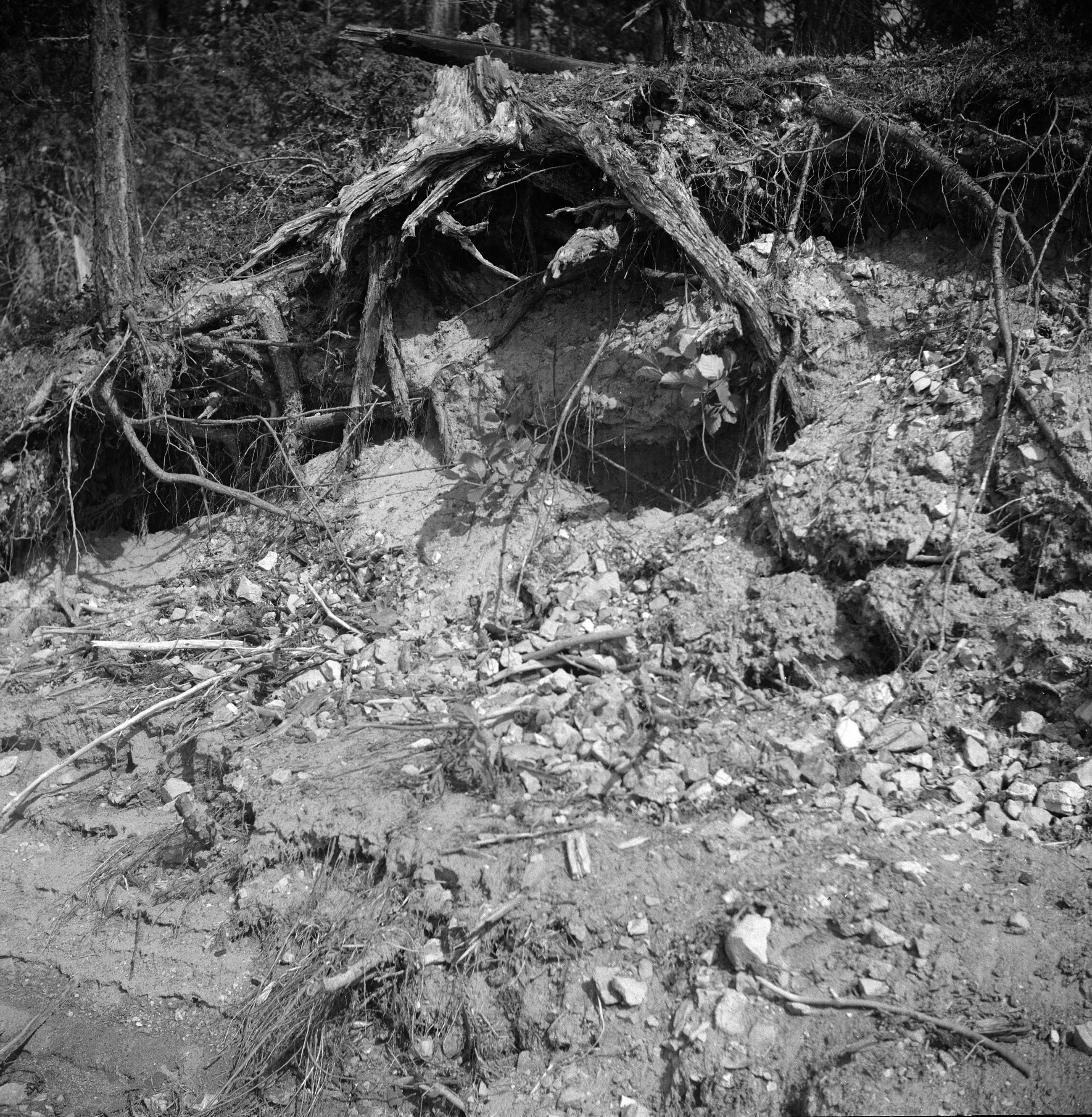 Hotingsjön. Lokal 604. Parti av strandkanten med av vårfloden blottat kulturlager. I lagret förekommer rikligt med skärvsten (koksten), vilket genom naturlig erosion spolats ut från högre liggande boplatser.