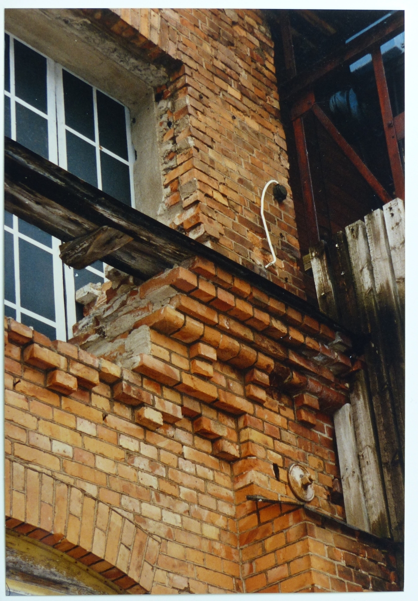 Gjuteriet, fasad mot söder, uppbruten gesims vid kupolugnarna