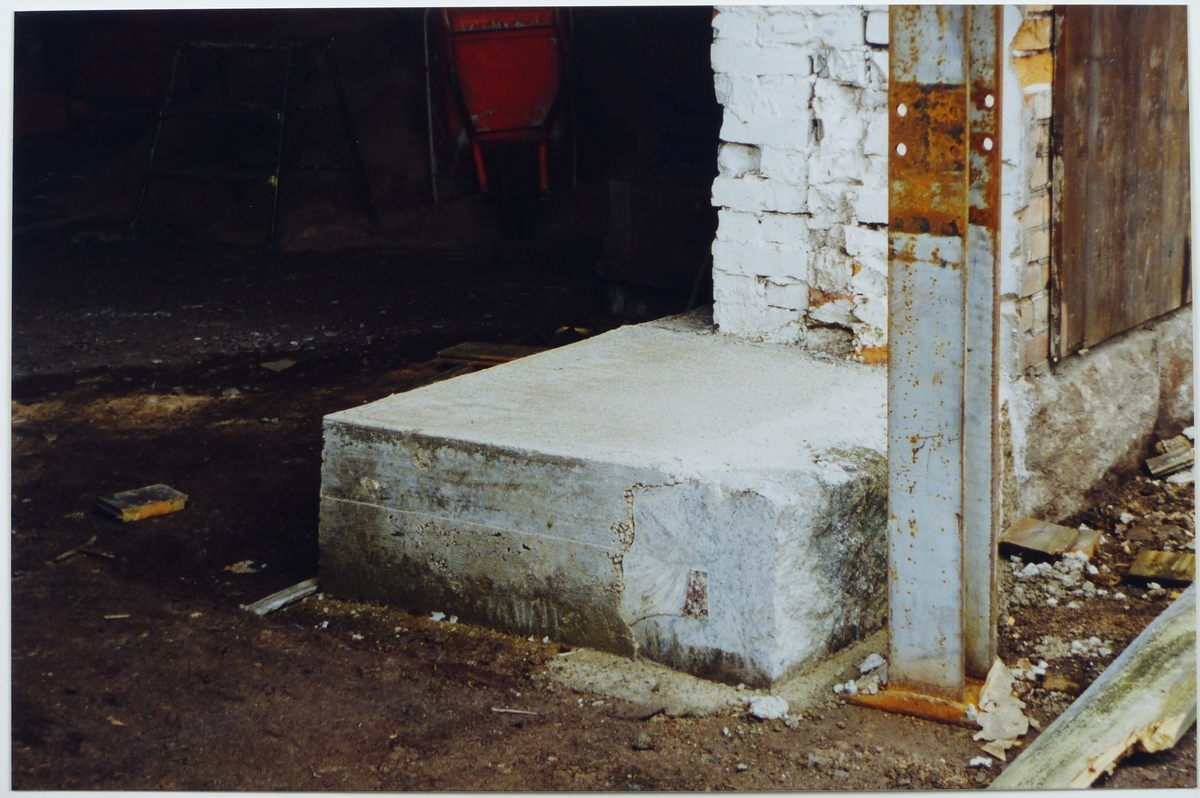Gjuteriet, grunden för murpelare, betong mot rummet