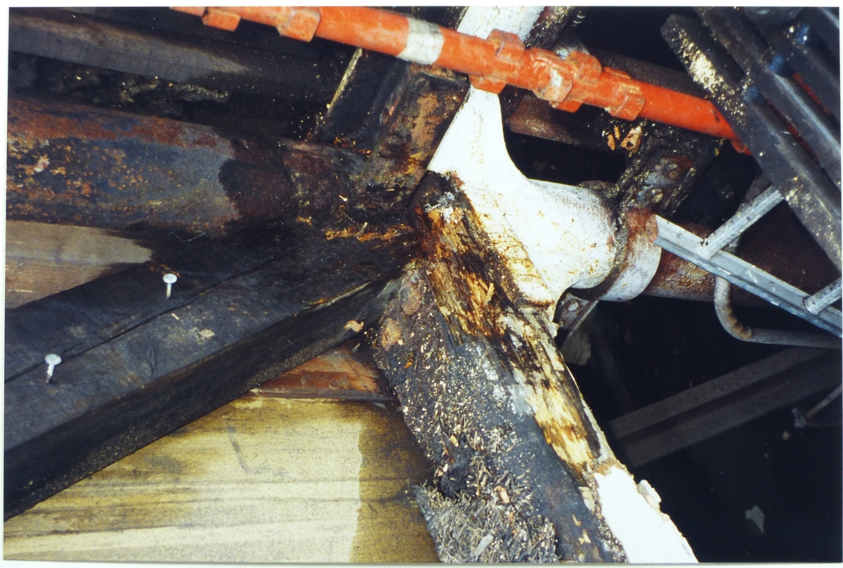 Gjuteriet, fuktskadad bjälke vid norra takfallet vid sandsilon
