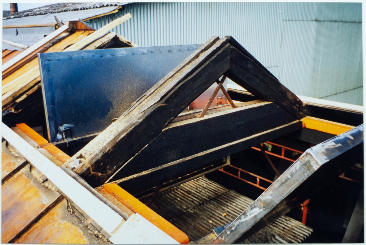 Gjuteriet, nytillverkad ventilationshuv av järn, förlaga ritning från 1904, detaljer på ventilationslucka, placering av lucka ursprunglig