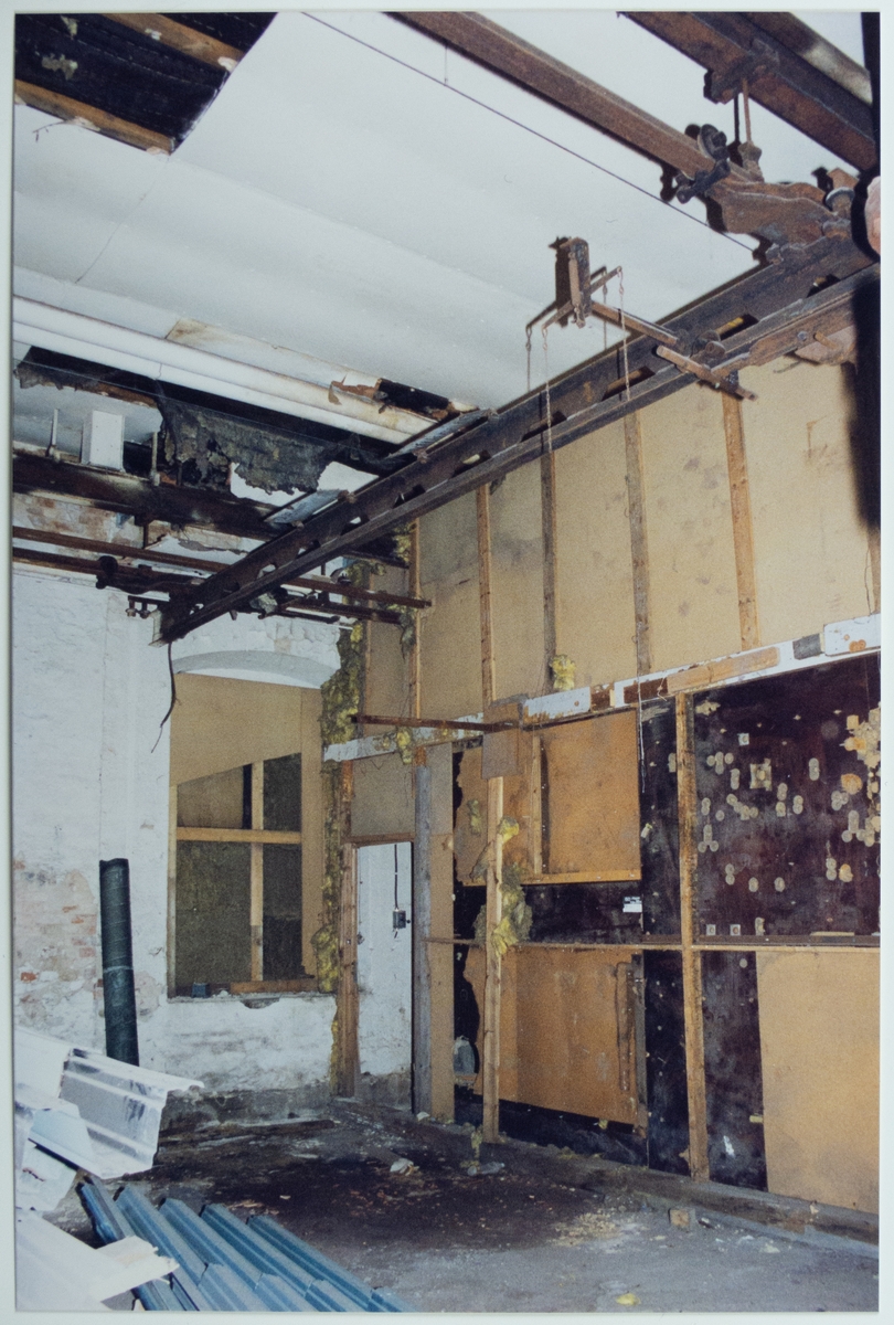 Gjuteriet, provisoriska mellanväggar, mot nordväst, igensatta fönsteröppningar