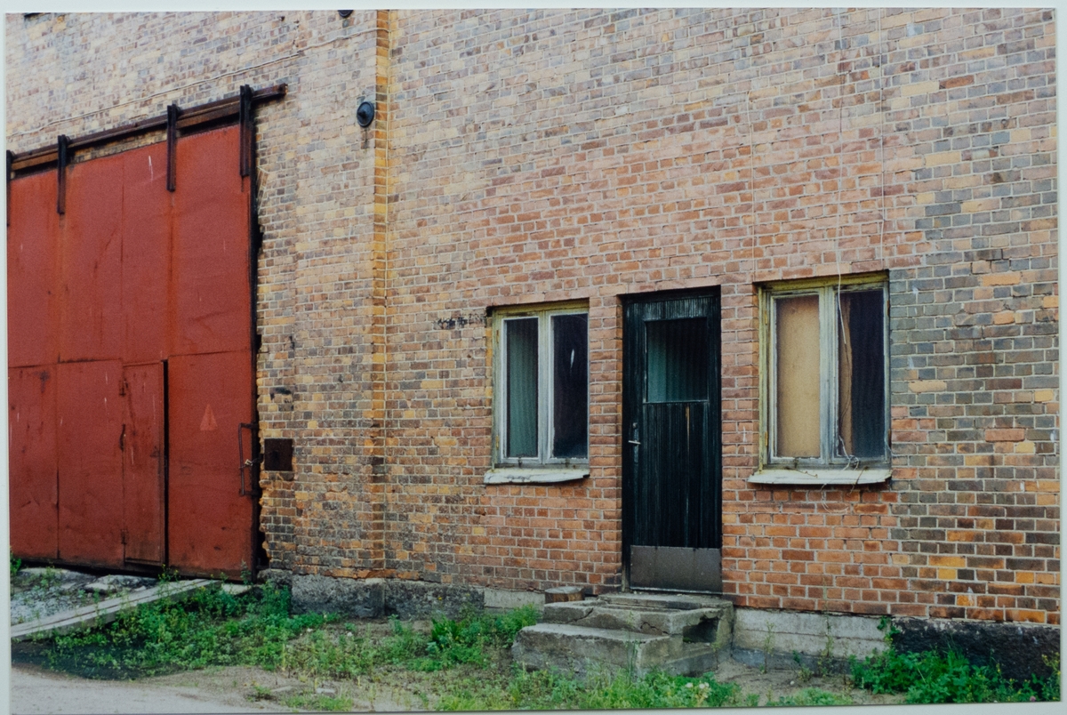 Gjuteriet, sydvästra fasaden, nyare port och igenmurad portöppning vid nuvarande kontorsdelen