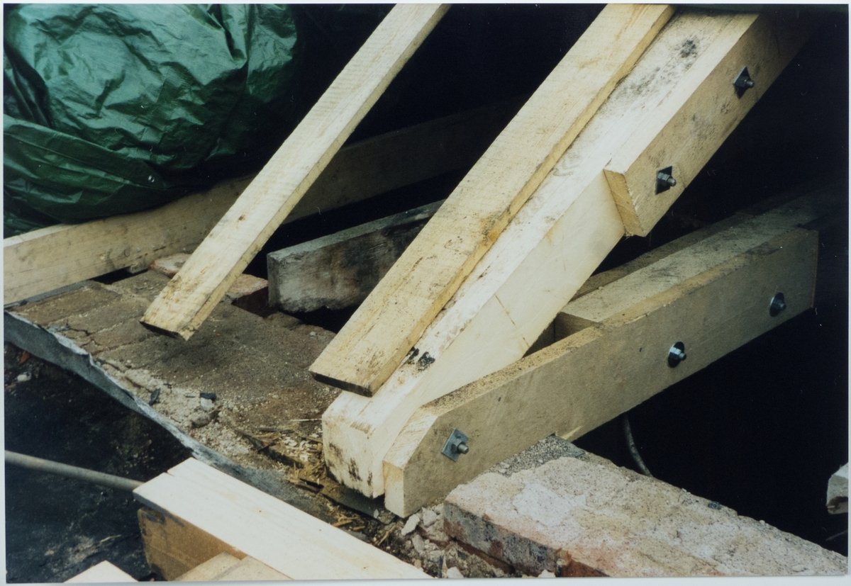 Restaurering av Mekaniska verkstadens exteriör. Rötskadade takstolar repareras