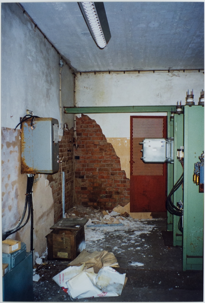 Maskinverkstaden: dokumentation inför utvändig restaurering. Pannrummet med fuktskador