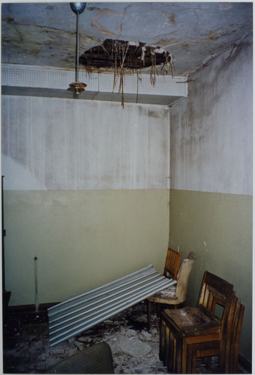 Maskinverkstaden: dokumentation inför utvändig restaurering. Skador i putsundertaket i omklädningsrummet