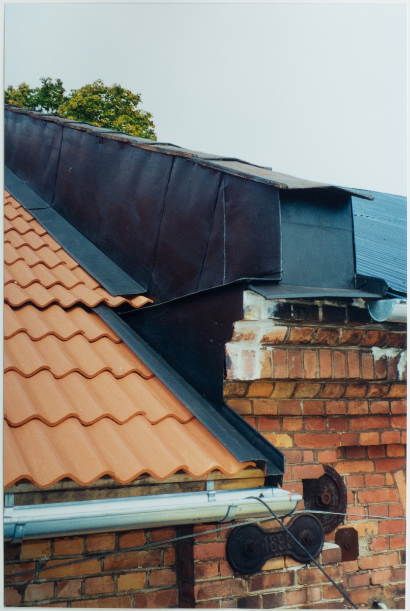 Maskinverkstad, takränna och ankarjärn (1899) vid byggnadsskarv