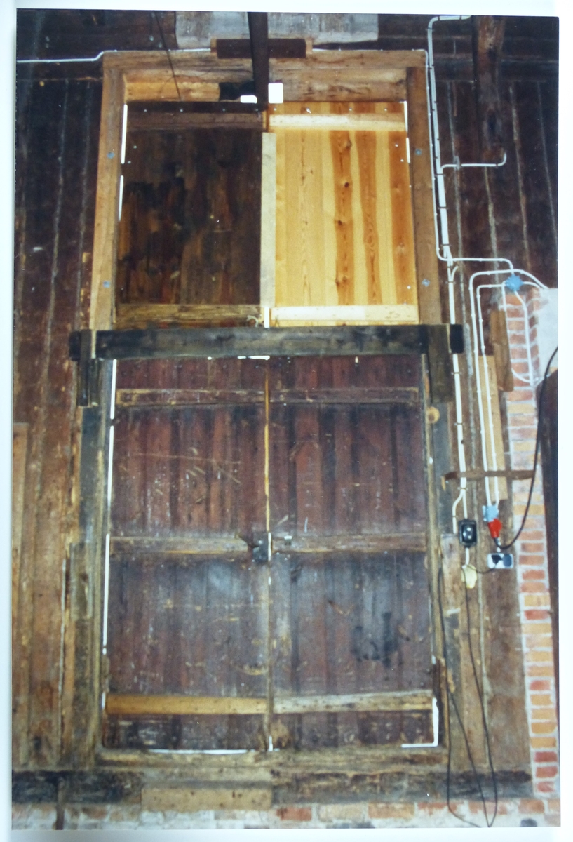 Träsliperi före renovering. Utlastningsport i södra hörnet.