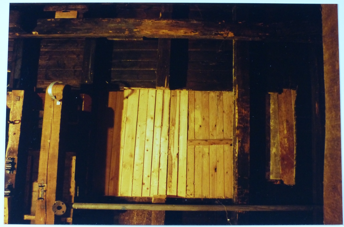 Träsliperiet före renovering. Taket i bildspelslokalen.