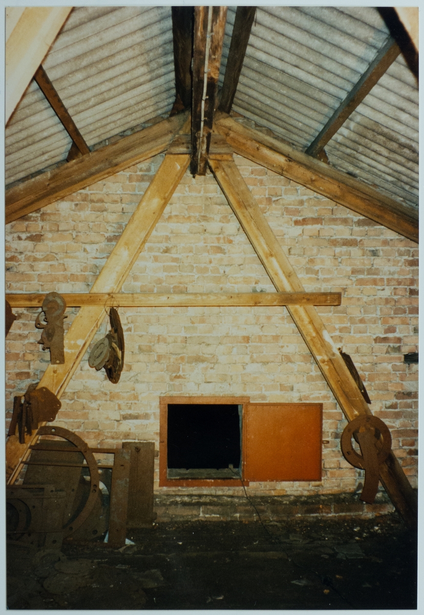 Maskinverkstad, brandlucka på östra vinden (mot väster), eternitskivor på åsar
