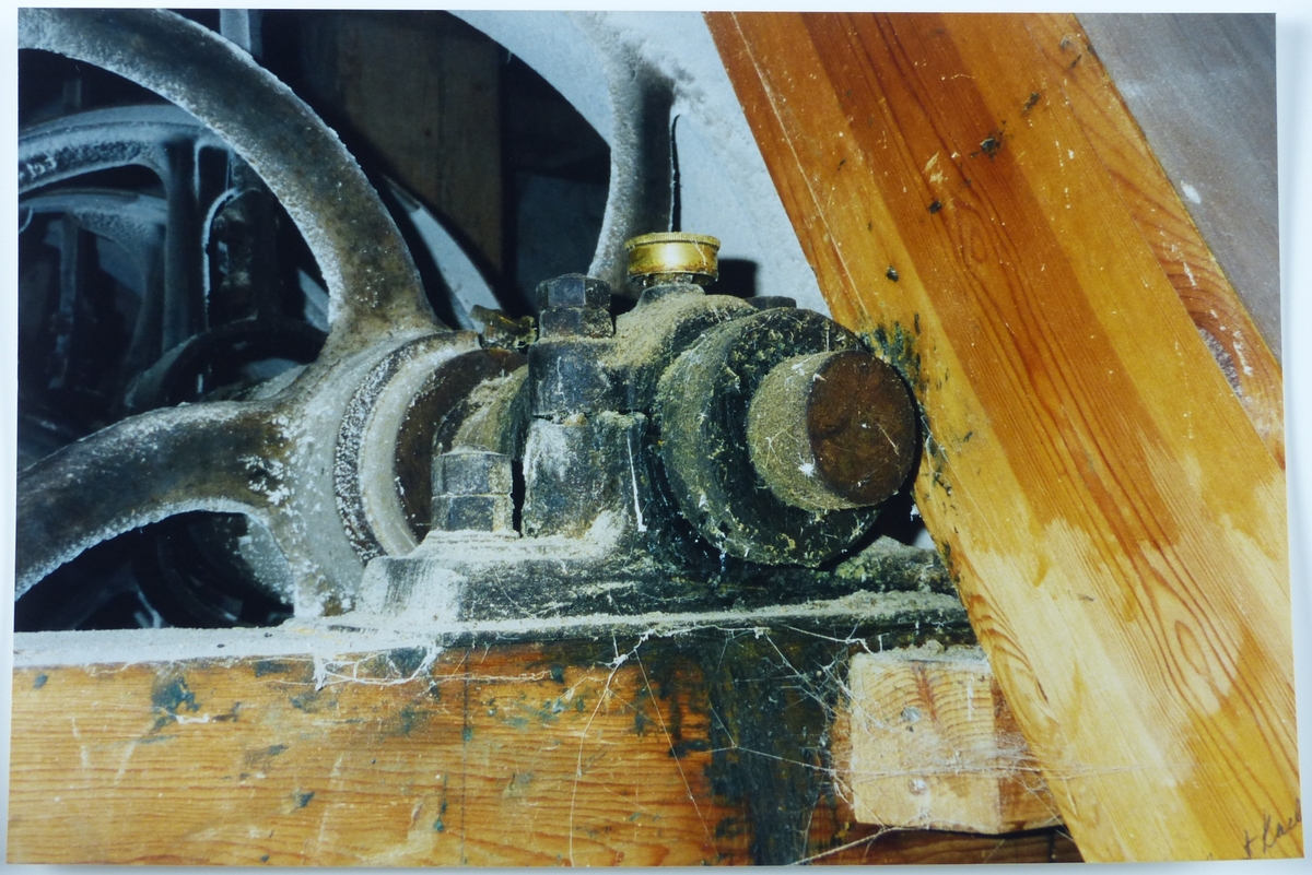 Titel: Forsviks Kvarn, detaljer på axelledningen, remskivor, lagvirjar m.m.