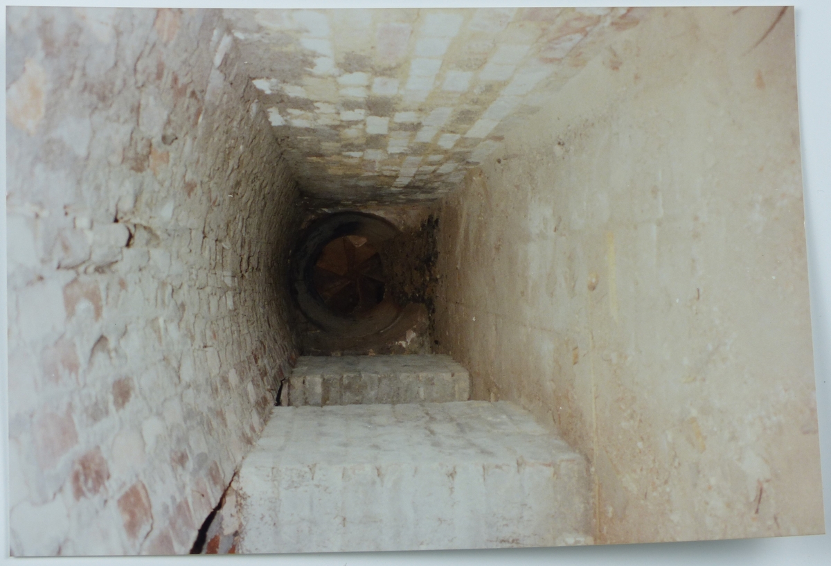 Träsliperiet, varmluftskanaler under torkugnarna, fläkt till skorstenen