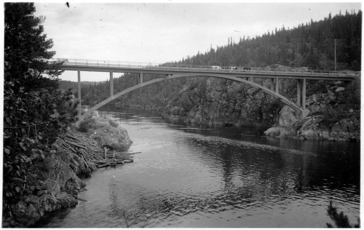 Vägbro över Ume älv på vägen mellan Slussfors och Umnäs.