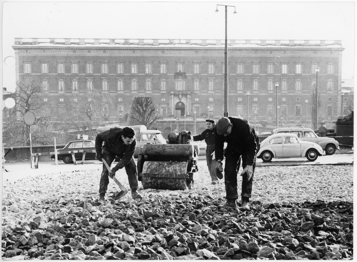 Markanläggningsarbete, med Kungliga slottet i bakgrunden.