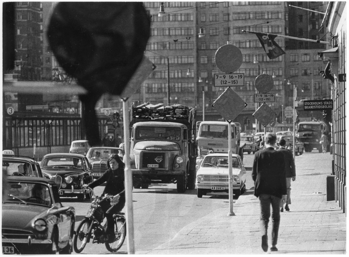 Vägmärken har täckts över inför högertrafikomläggningen.