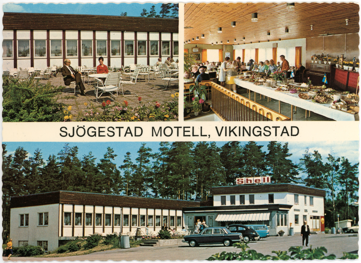 Vykort av Sjögestad Motell i Vikingstad. Länsväg 636 Östergötlands län.