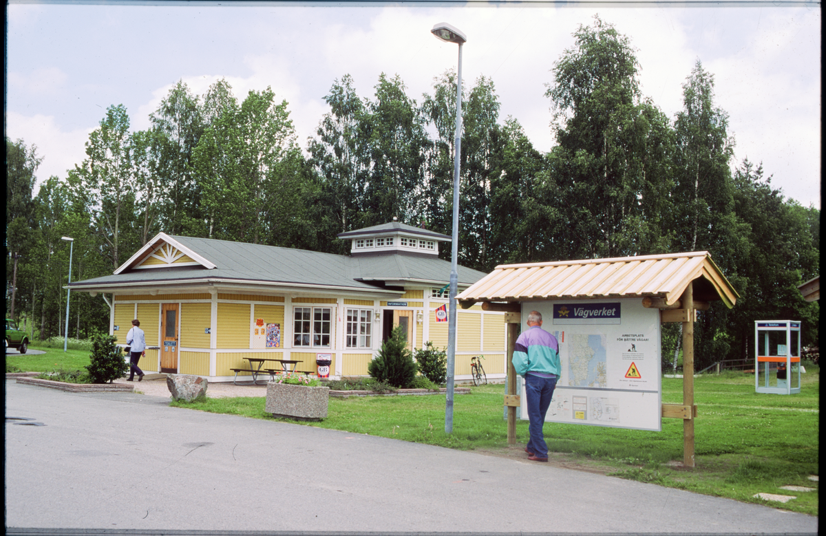 Rastplats med turistinformation, kiosk, toalett och telefonkiosk.