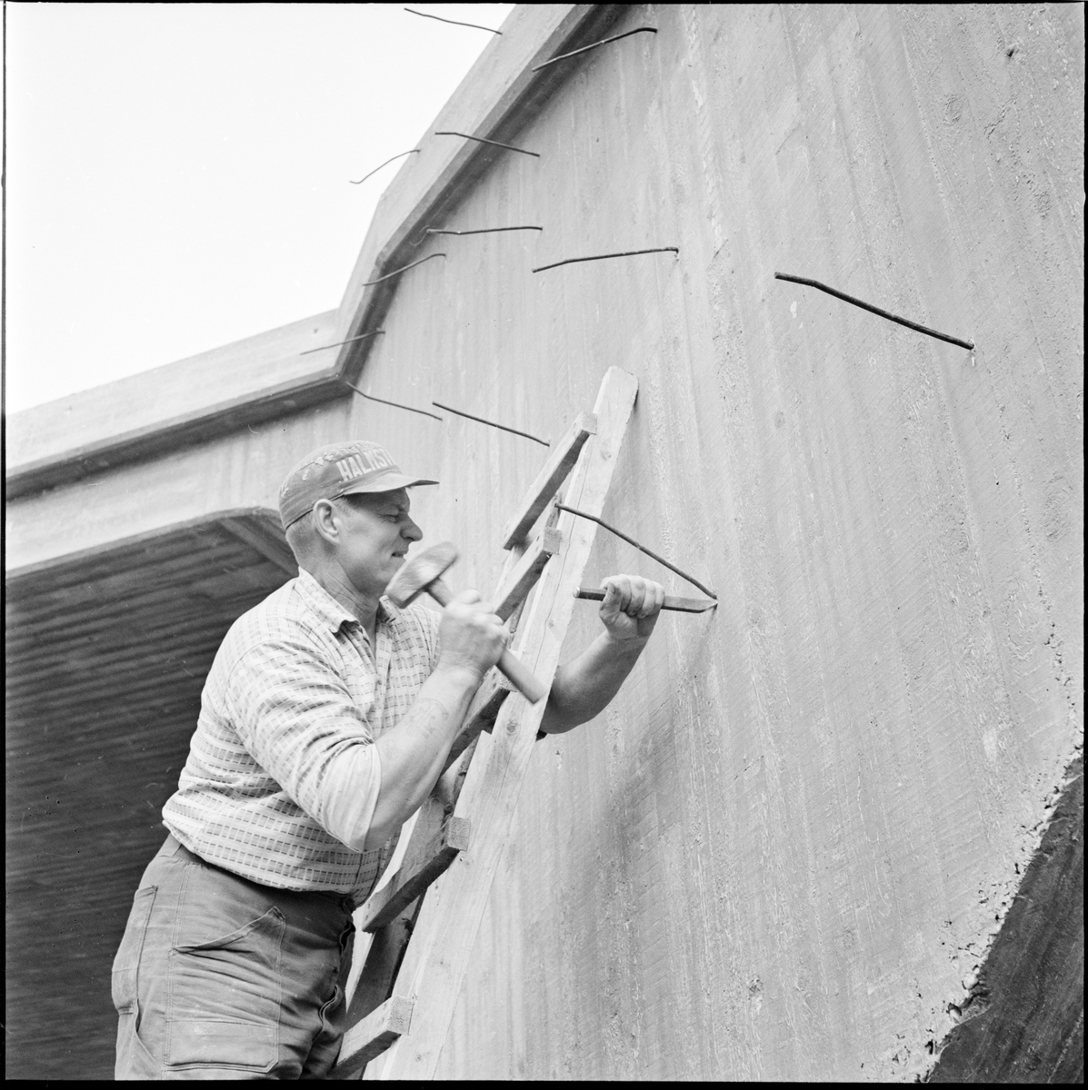 Borttagning av armeringsjärn från vägport på Norrtäljevägen (dagens E18), Mörby, Danderyd.