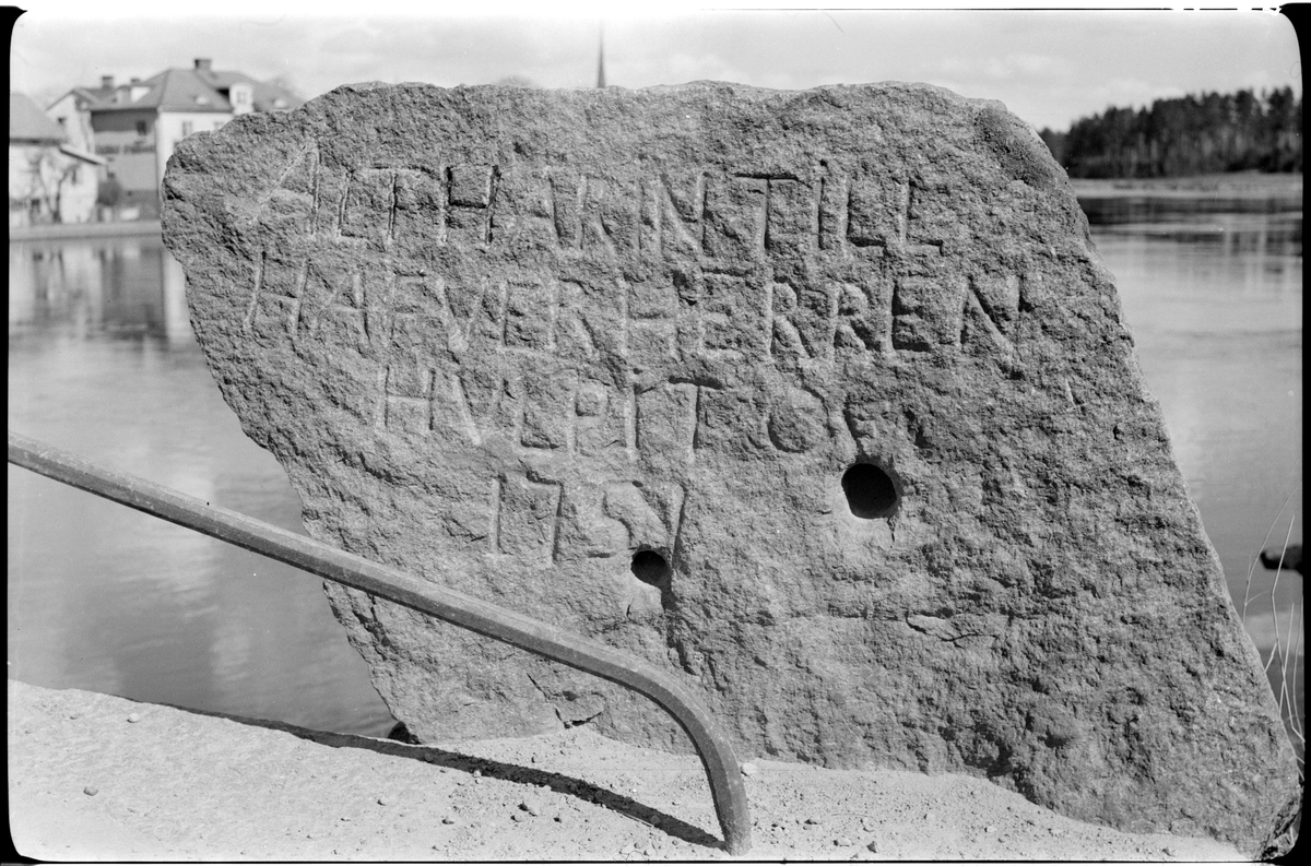 Minnesmärke, stenblock, rest sten, med inskription: "ALT HÄR INTILL / HAFVER HERREN / HULPIT OSS / 1751". Letälven. Länsväg 204.