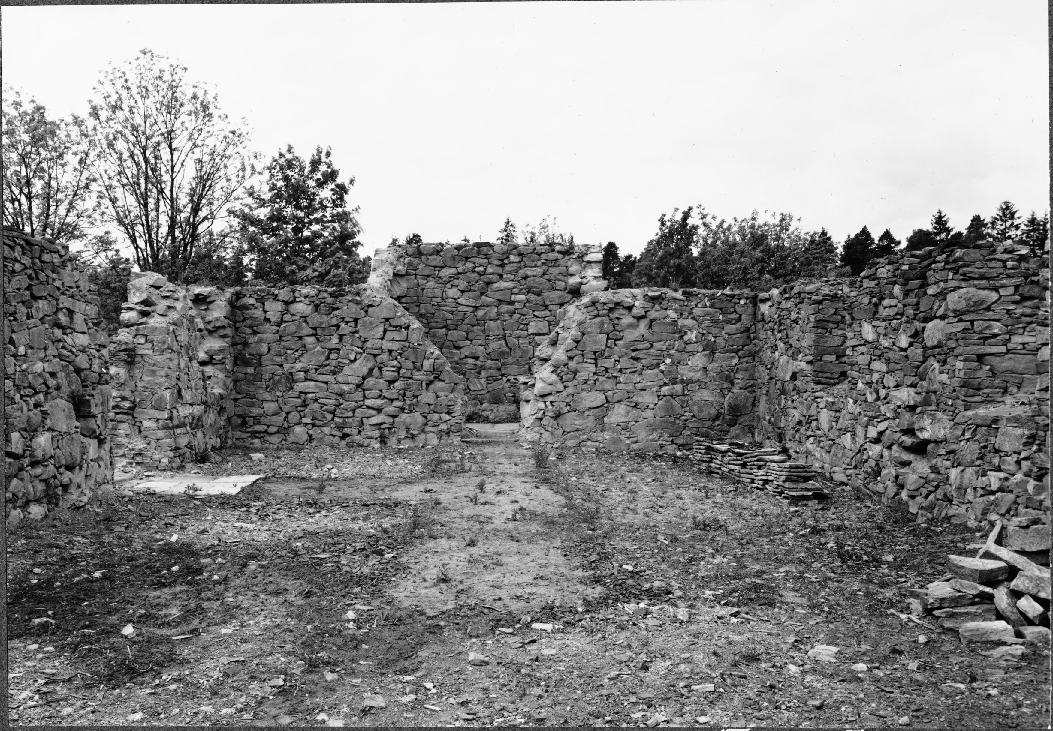 Kyrkoruinen, interiör mot väster.