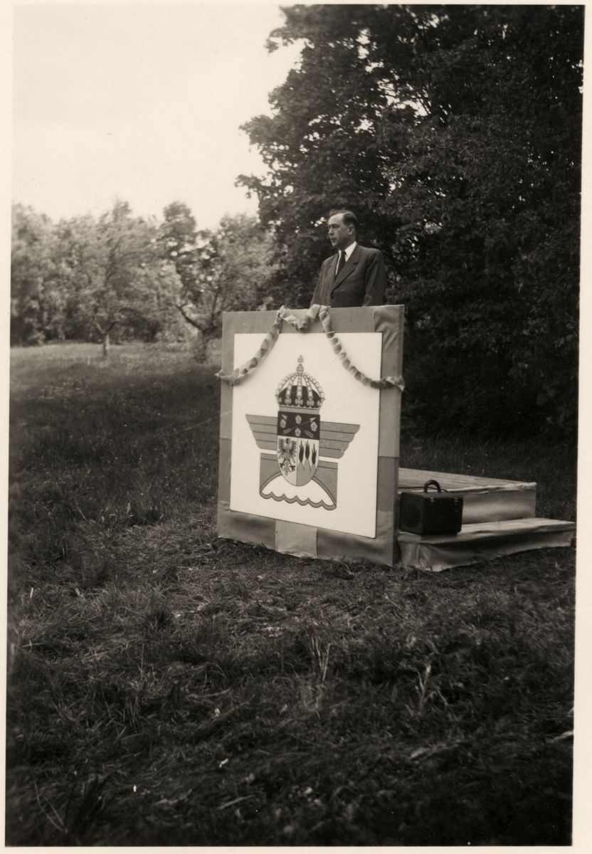 Vägdirektören Sten G. Ohlson talar på vägdagen i Sannahed.