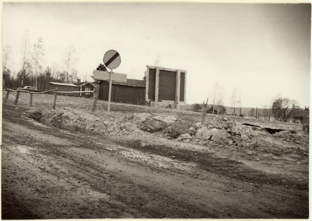 Grusväg vid västra Morgårdshammar-skylten. Dåvarande länsväg 250. Nuvarande länsväg 669 Dalarnas län.