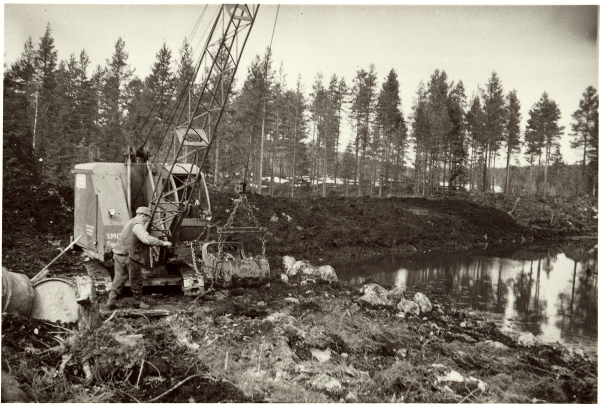 Utgrävning av myr med slängskopa. Gamla vägen Eldforsen - Kroktorp. Utmed dagens riksväg 26.