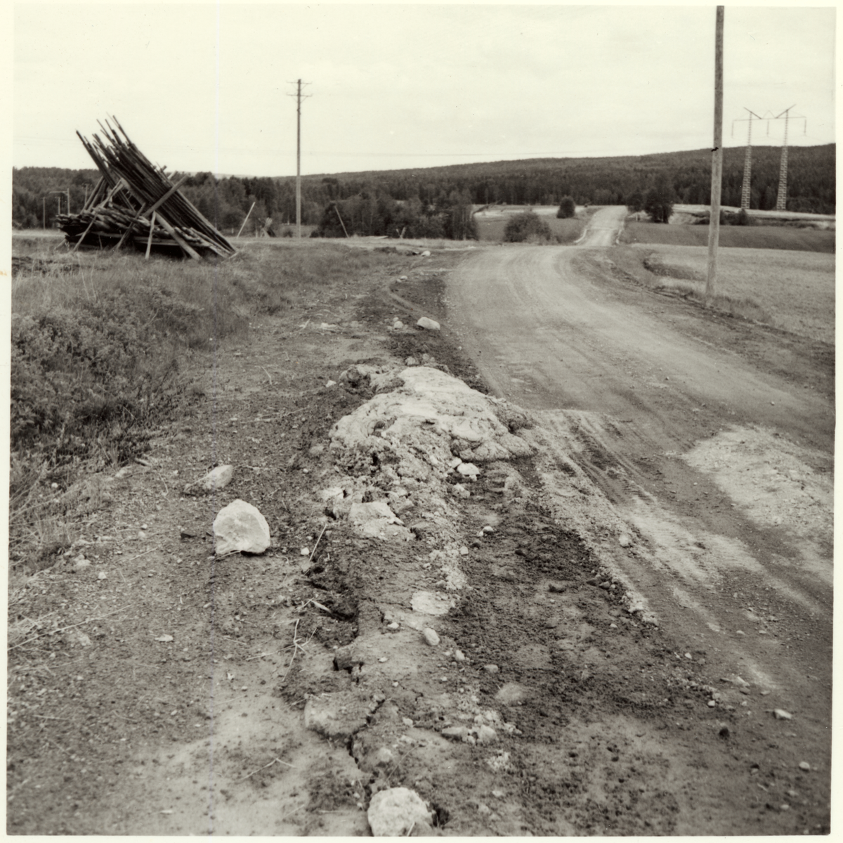 Vägskador från tjällossning. Hälgbo (Helgbo) - Hälgnäs (Helgnäs), vy mot Hälgbo. Dalkarlsvägen. Länsväg 908 Dalarnas län.