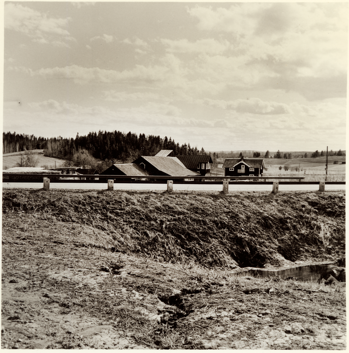 Vägtrummor i betong och plåt. Vy uppströms. Vägräcken med betonggardister. Länsväg 765 Dalarnas län.