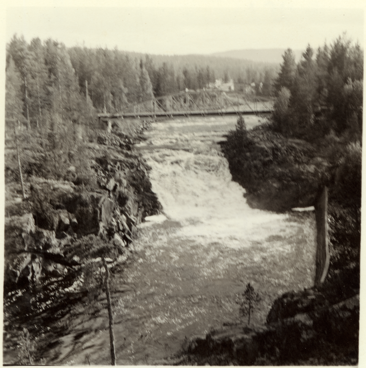 Gamla bron över Ore älv. Fotograferad från nya bron, mot väst.
