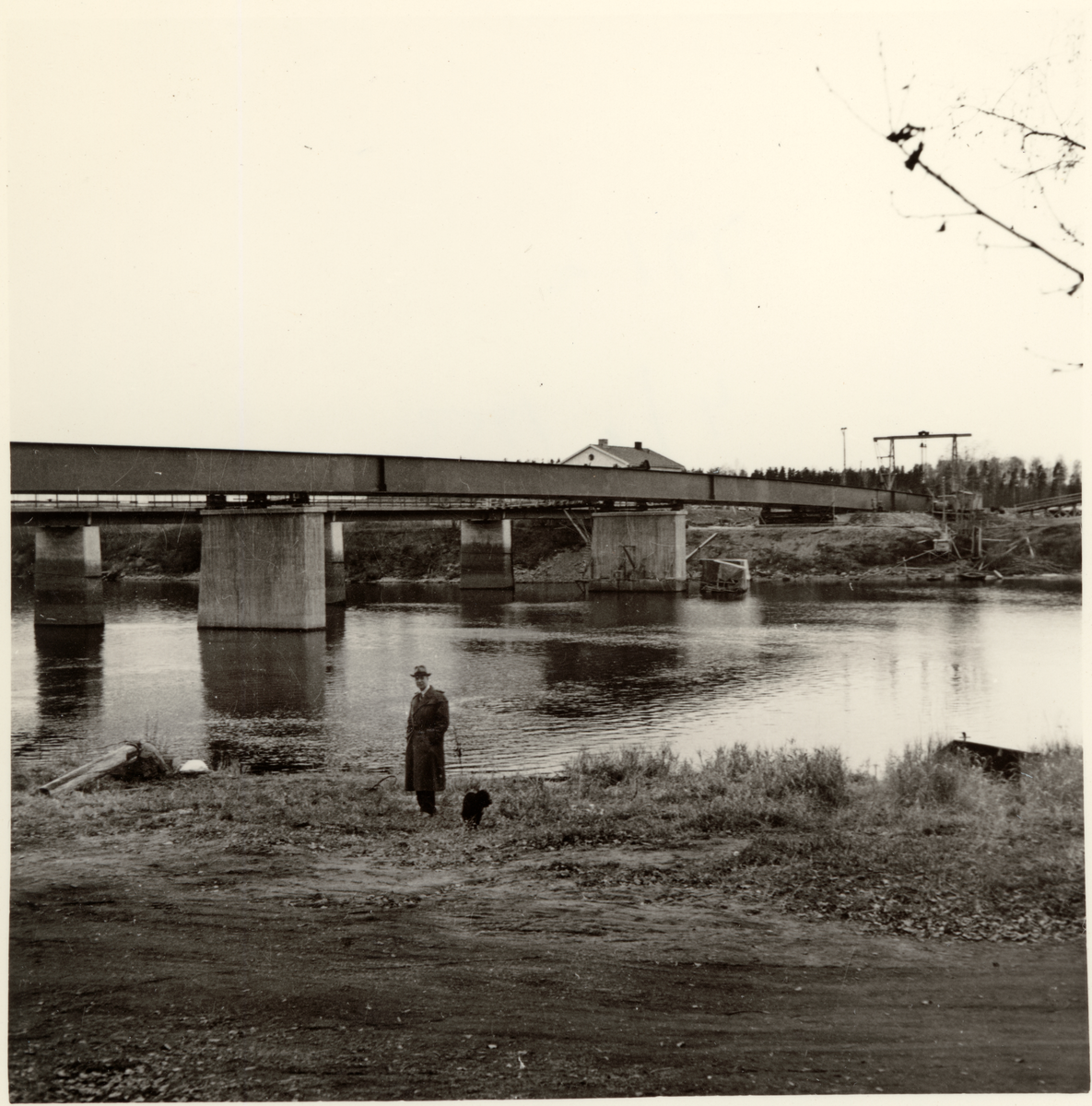 Byggande av bro. Nedströmsvy. Riksväg 69.