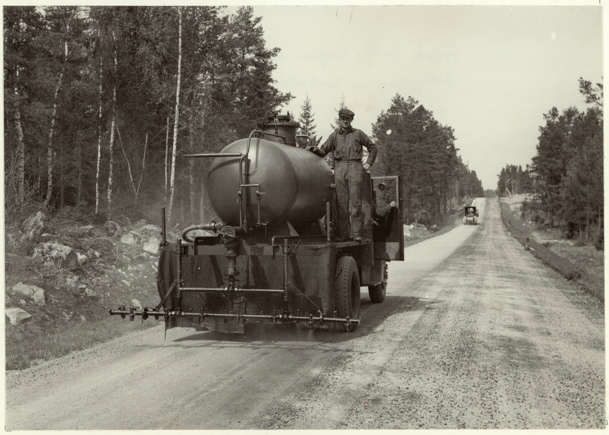 Första beläggningen av vägen Norrtälje - Söderbykarl.