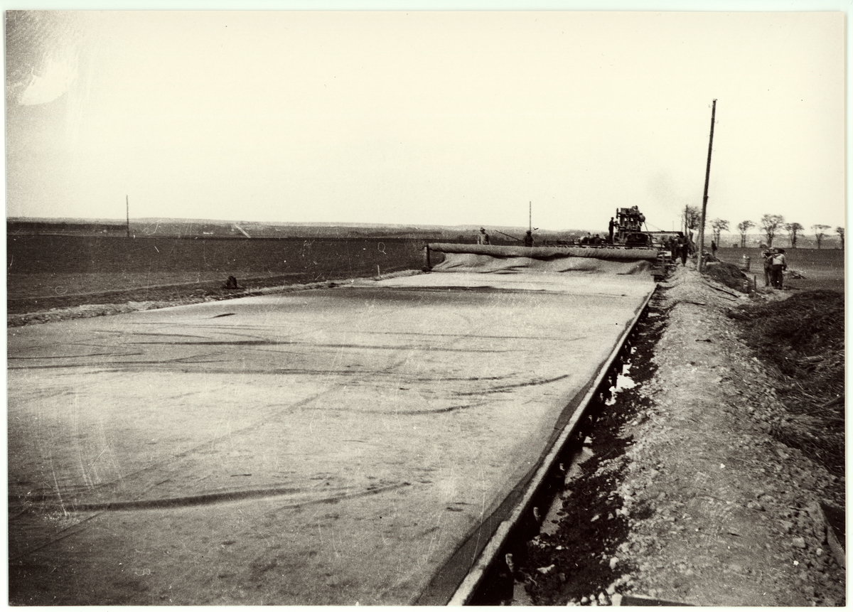 Betongbeläggningsarbeten på vägen Getinge-Lund. Idag Länsväg 946 Skåne län.