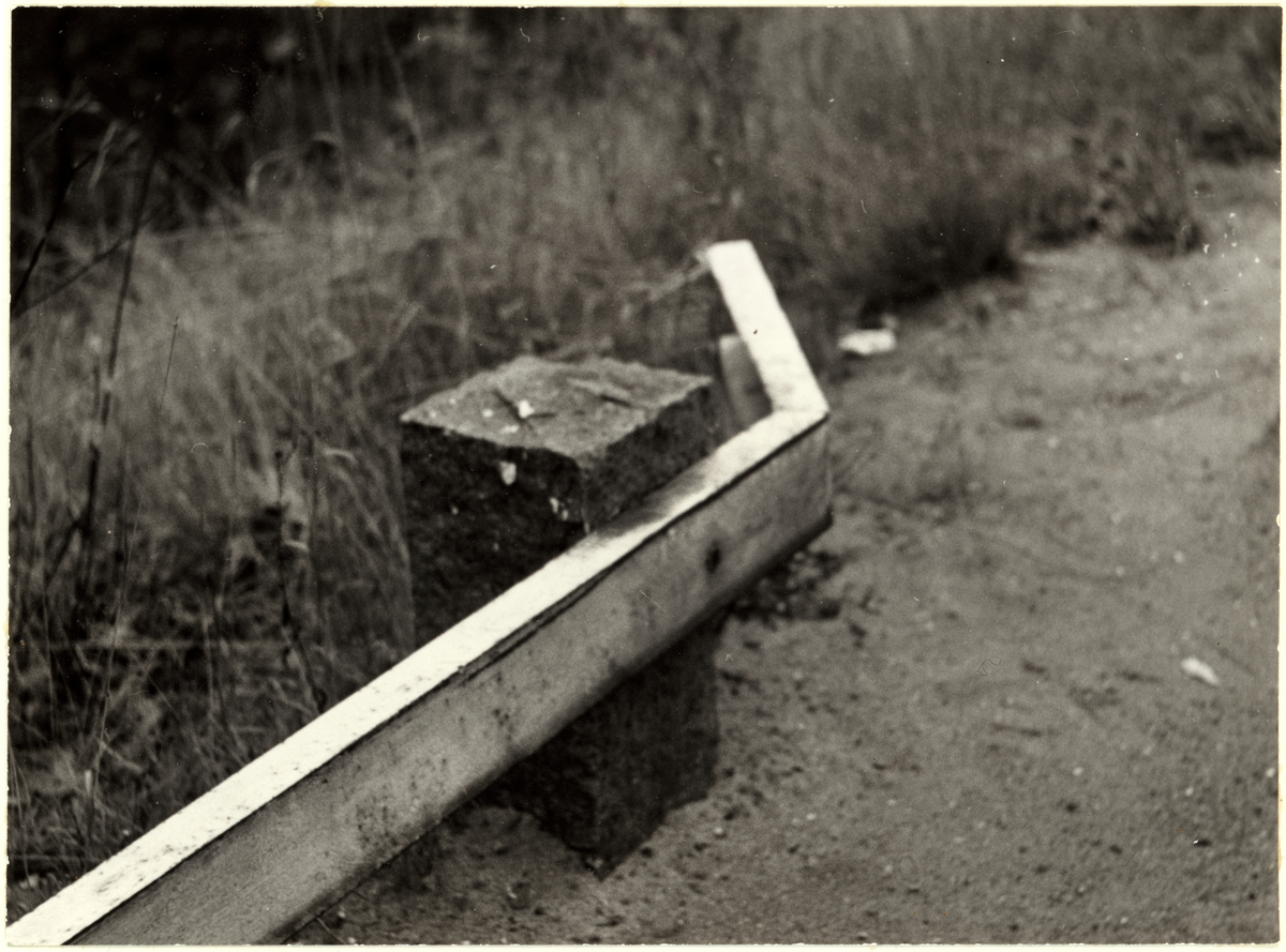Påkört och skadat vägräcke med stengardister utmed riksväg 10 (Rikstian) vid Gruvriset, Falun. Asfaltsväg. Idag Tunavägen längsmed E16.