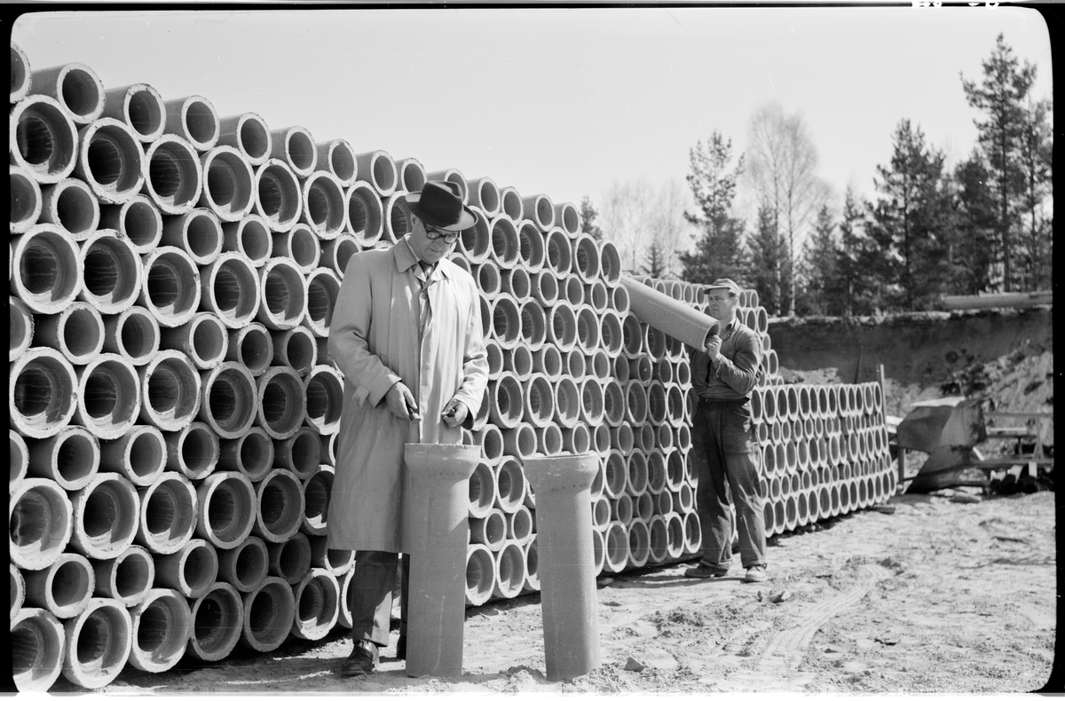 Provtagning av betongrör. Finsta Cementgjuteri. Vägmästare Ekerfeldt.
