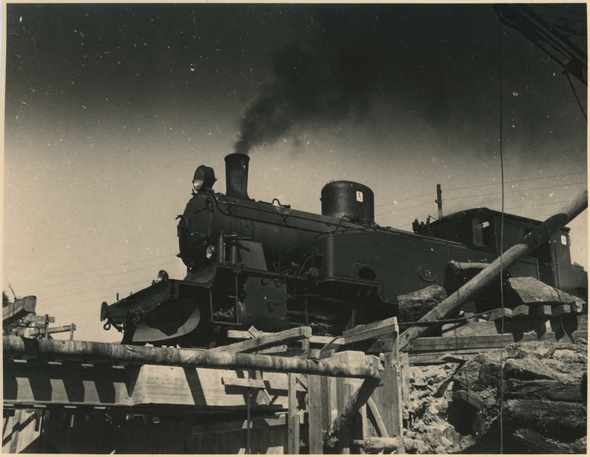 Hällefors -Fredriksbergs Järnväg, HFJ lok 11. vid en bro.