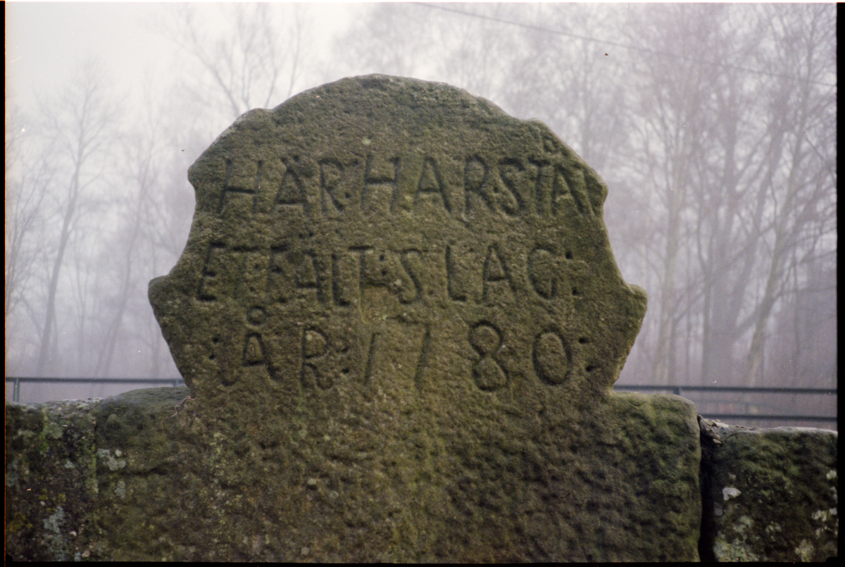 Stenvalvsbro med skylt i Dösjebro.