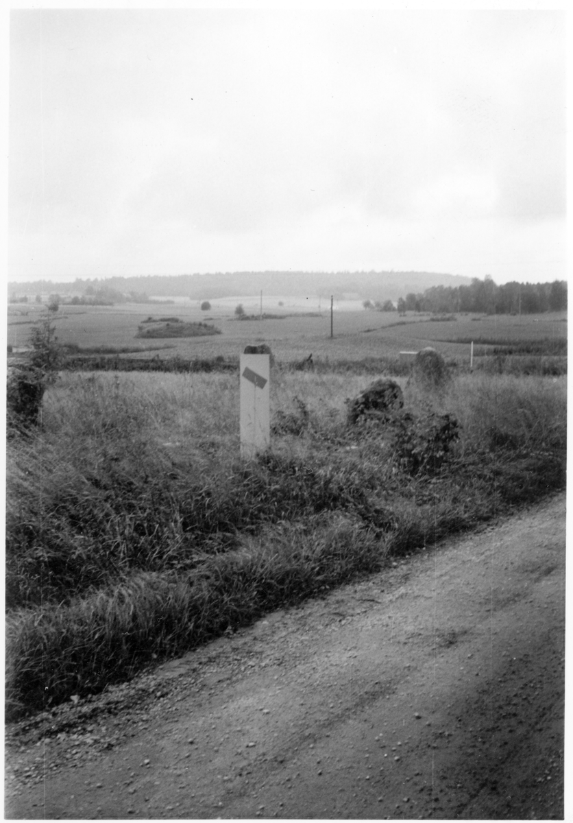 Avståndsmarkering för plankorsning. Idag Länsväg 564 Örebro län, avfart från Länsväg 204.
