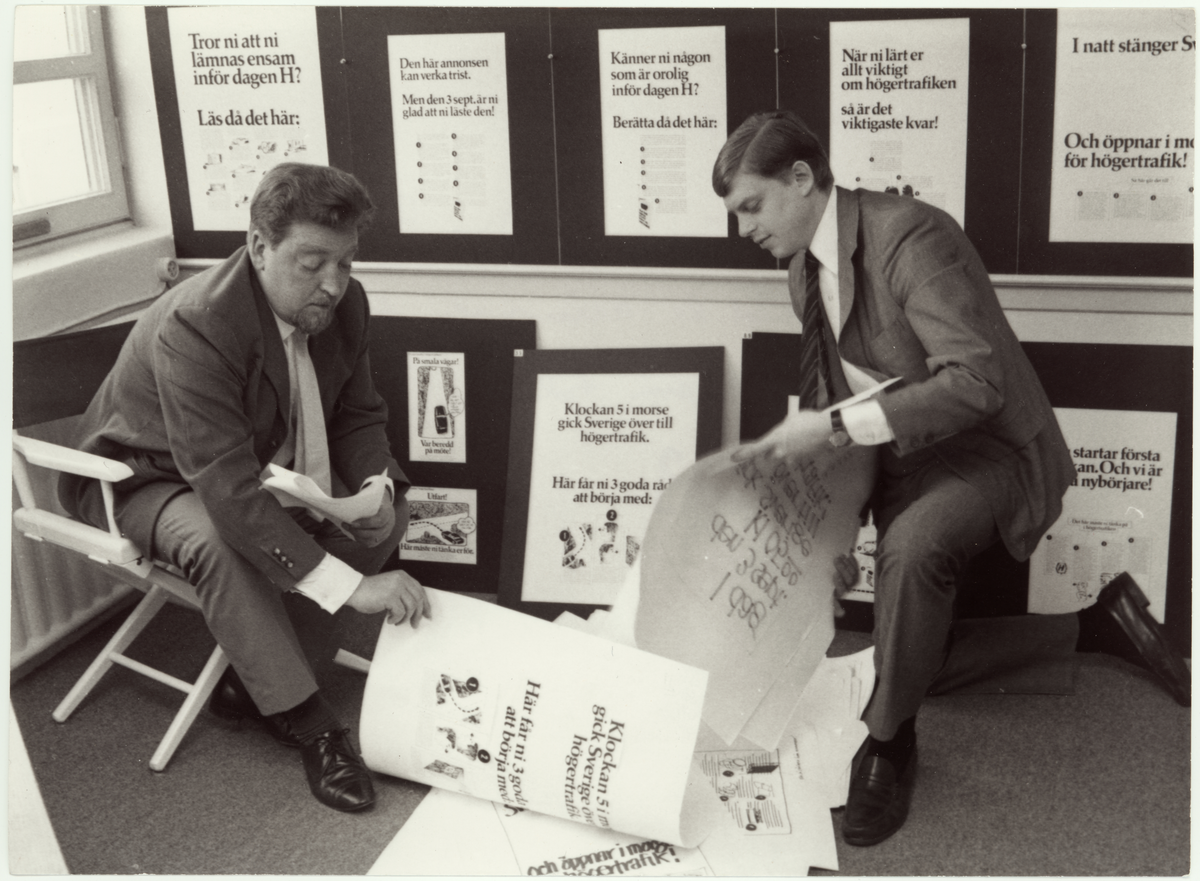 Kvalitetskontroll av kampanjaffischer inför Dagen H.