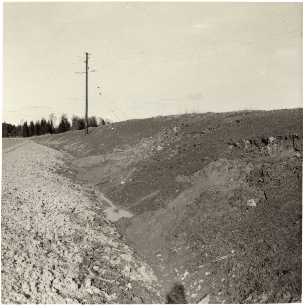 Vägskador på slänt från tjällossning. Falun - Backa. Länsväg 875 Dalarnas län.